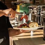 W restauracji można skosztować bezpłatne śniadanie w formie bufetu.